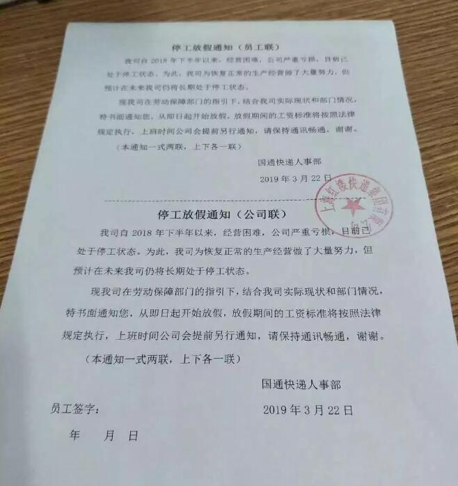 根據其停工放假通知顯示,國通為恢復正常的生產經營做出了大量努力,但預計在未來仍將長期處于停工狀態。結合實際現狀和部門情況,從即日起開始放假,上班時間會提前另行通知。